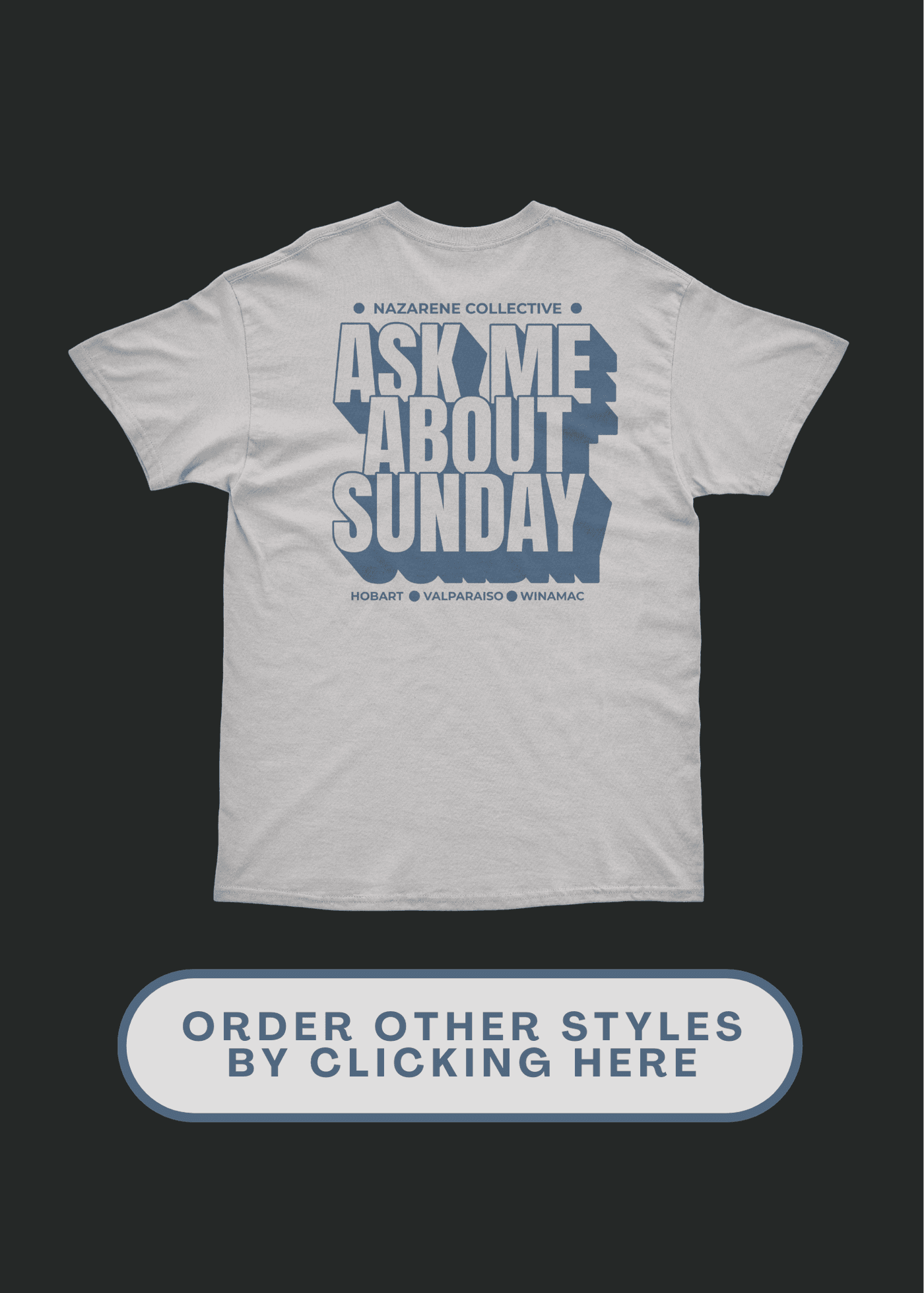 We invite the Tribe to take on a challenge: wear your "Ask Me About Sunday" shirt at least once each week!